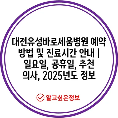 ✅ 대전유성바로세움병원의 진료시간과 예약 방법을 알아보세요!