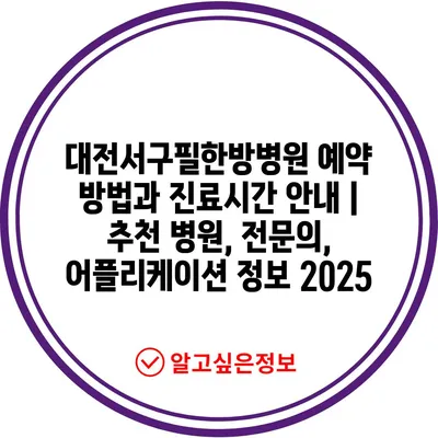 ✅ 대전서구필한방병원의 진료시간과 예약 방법을 알아보세요.