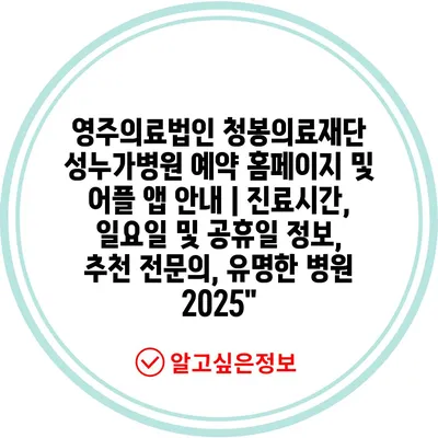 영주의료법인 청봉의료재단 성누가병원 예약 홈페이지 및 어플 앱 공지 | 진료시간, 일요일 및 공휴일 정보, 추천 전연락, 유명한 병원 2025″ 에 대해 자주 묻는 질문 TOP 5