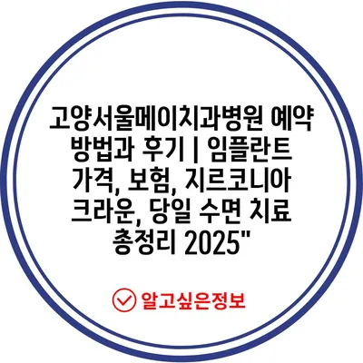 고양서울메이치과병원 예약 방법과 후기 | 임플란트 가격, 보험, 지르코니아 크라운, 당일 수면 치료 총정리 2025