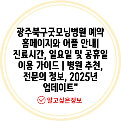 광주북구굿모닝병원 예약 홈페이지와 어플 공지| 진료시간, 일요일 및 공휴일 이용 설명서 | 병원 추천, 전연락 정보, 2025년 업데이트