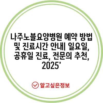 나주노블요양병원 예약 방법 및 진료시간 공지| 일요일, 공휴일 진료, 전연락 추천, 2025′ 에 대해 자주 묻는 질문 TOP 5